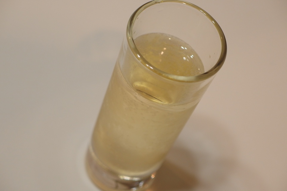 ゆっくりと炭酸水を入れて、そーっとかき混ぜて完成!