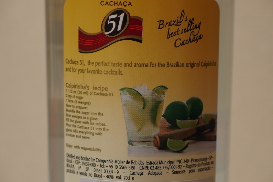 カシャーサの裏ラベルには、思いっきりカイピリーニャのレシピが