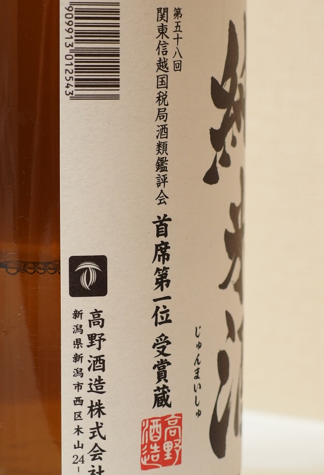 第五十八回 関東信越国税局酒類鑑評会 首席第一位 受賞蔵 とのこと。